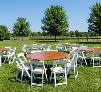 Comfortable, elegant seating for your ceremony and reception. Our wedding chair rental options and table selections accommodate guest lists of any size. Choose from various styles to match your wedding theme, with optional setup services available.